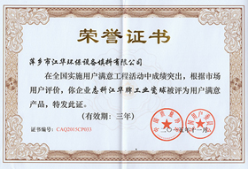 • 2013年用户满意产品证书(蜂窝陶瓷)