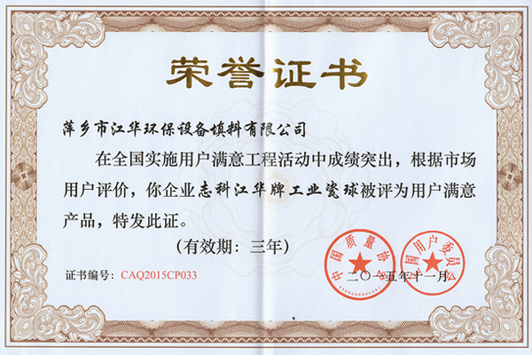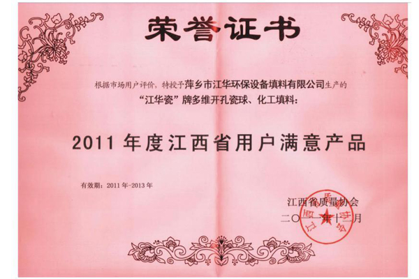 • 2011年用户满意产品(多维开孔瓷球、化工填料)