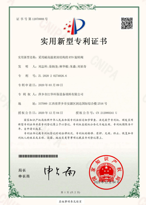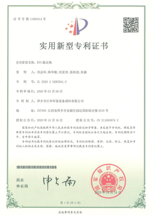 • 填料专利证书