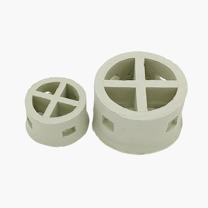陶瓷阶梯环吸收了短拉西环的特点,也改变了填料的环高与直径相等的习惯,降低了环的高度,减薄了材质的厚度,并在环的侧端增加了翻边。
